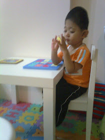 Edited : I just gave Rayyan Ariff roti putih taruk milo.. To my surprise, he managed to feed himself! Hip Hip Hooray!! Cayalah Ian! Sayang kamu.. *hand coordination still got room for improvement, we'll work on that later yea sayang*
